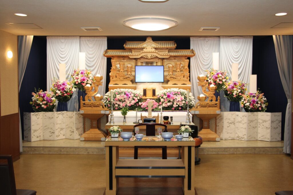 以前にも弊社をご利用いただいたご家族より、三度目のご依頼を賜りました。今回は、前回・前々回と比べてご会葬の人数は少なめではありましたが、遠方よりお越しになるご親族の方にご宿泊いただけるよう、通夜・葬儀の二日間にわたってお式を執り行いました。ご家族・ご親族だけの空間で、故人様とのお別れのひとときをゆっくりとお過ごしいただけたことと存じます。また、ご出棺の際には、故人様がお好きだったお花をお棺へ手向けていただき、たくさんの花々に囲まれながら、あたたかな旅立ちとなりました。