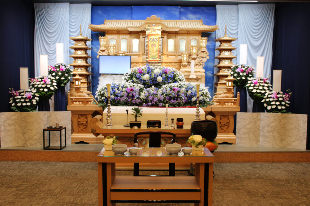 故人様は急逝され、ご家族様にとって突然のお別れとなりました。ご葬儀は家族葬にて執り行い、祭壇には青を基調とした花々をお飾りし、落ち着いた雰囲気の中でお見送りいただきました。また、生前お酒を好まれていた故人様のため、ご家族様よりお気に入りのお酒をお棺にお納めいただきました。故人様を偲びながら、心温まるお別れのひとときとなりました。