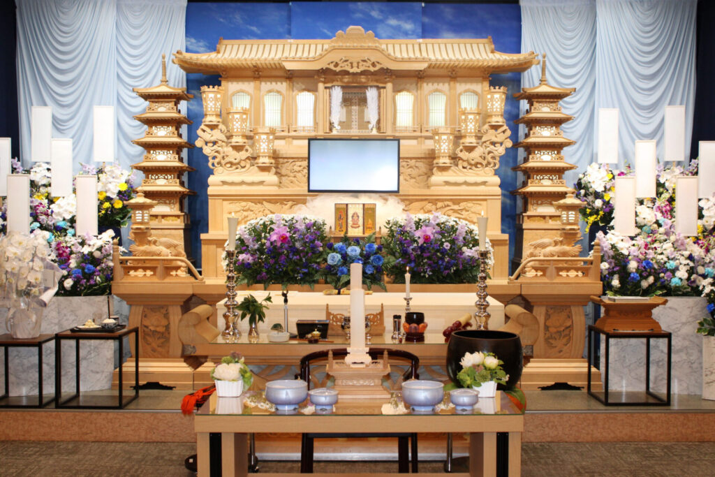 故人様は病院にてご逝去され、その後、弊社霊安室にてご安置いたしました。ご葬儀当日は、生前お好きだった紫色のお花を中心に祭壇をお飾りし、多くのご友人より供花も賜り、華やかであたたかな雰囲気のお式となりました。ご家族やご参列の皆様にも、安心して故人様をお見送りいただけたご様子でした。