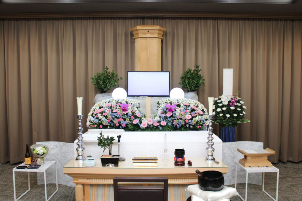 家族葬をご希望され、弊社にご依頼いただきました。故人様はピンク色がお好きだったとのことで、当初お召しになっていた浴衣から、生前お気に入りだったピンク色のお洋服へお着せ替えいたしました。祭壇もピンク色のお花を中心にお飾りし、ご出棺前には、そのお花をお棺の中へ手向けていただきました。また、故人様がお好きだったお酒やお菓子も一緒にお納めし、ご家族に見守られながら、穏やかなご出棺となりました。