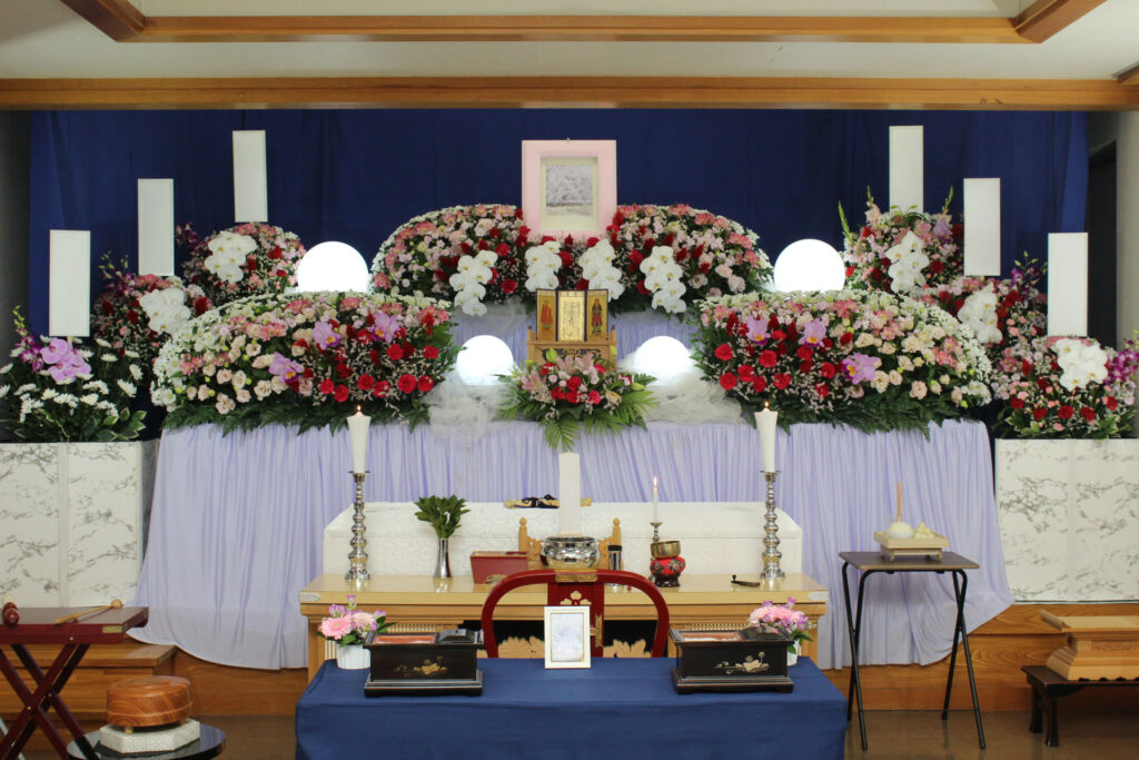 施設にて看取られたのち、弊社霊安施設へご安置いたしました。できるだけご自宅に近い式場でのご葬儀をご希望されておりましたため、近隣寺院の貸し式場にて執り行いました。ご逝去からご葬儀まで短い期間ではございましたが、故人様とのお別れのひとときを、落ち着いてお過ごしいただけたのではないかと存じます。