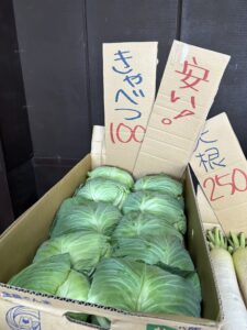 目玉商品は卵1パック100円とキャベツ1玉100円!