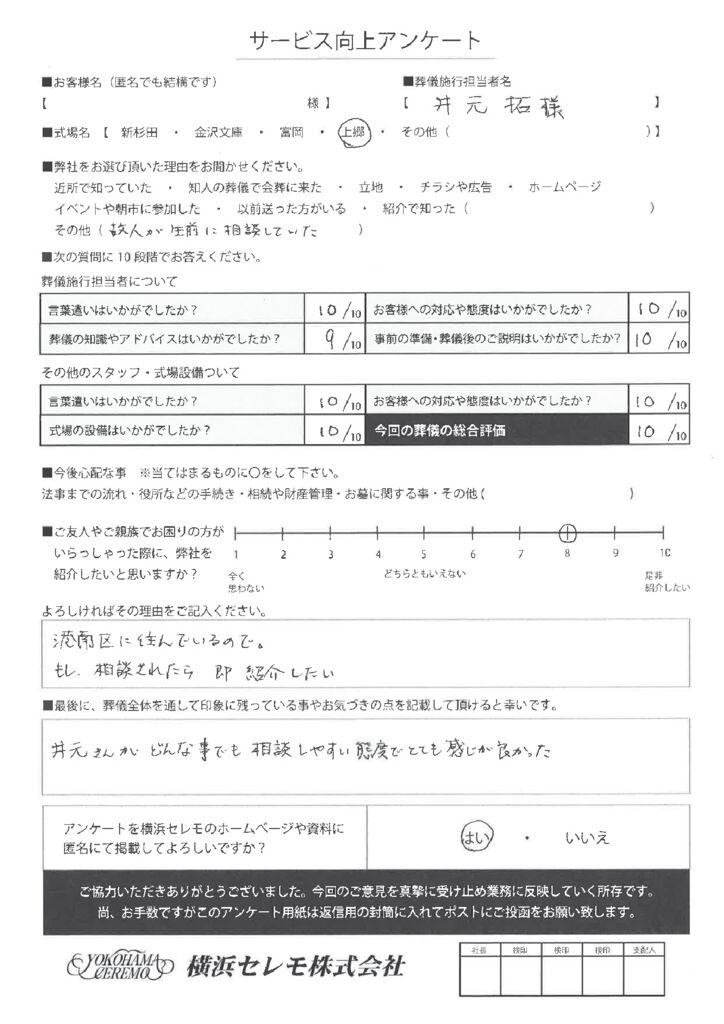 横浜セレモをご利用頂いたお客様の声をご紹介させて頂きます。