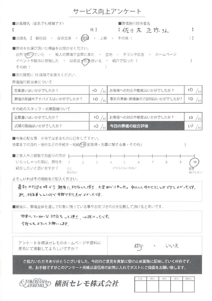 横浜セレモをご利用頂いたお客様の声をご紹介させて頂きます。