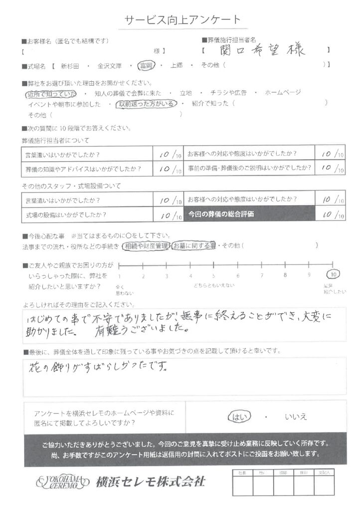 横浜セレモをご利用頂いたお客様の声をご紹介させて頂きます。