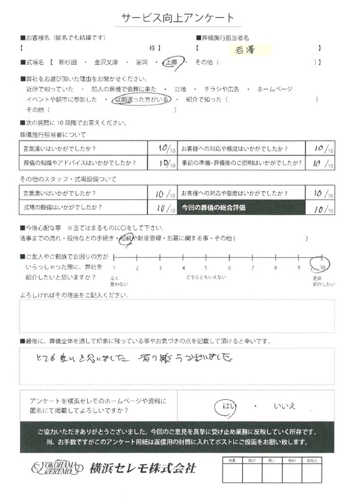 横浜セレモをご利用頂いたお客様の声をご紹介させて頂きます。