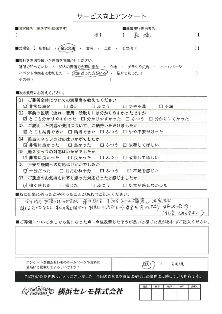 横浜セレモをご利用頂いたお客様の声をご紹介させて頂きます。